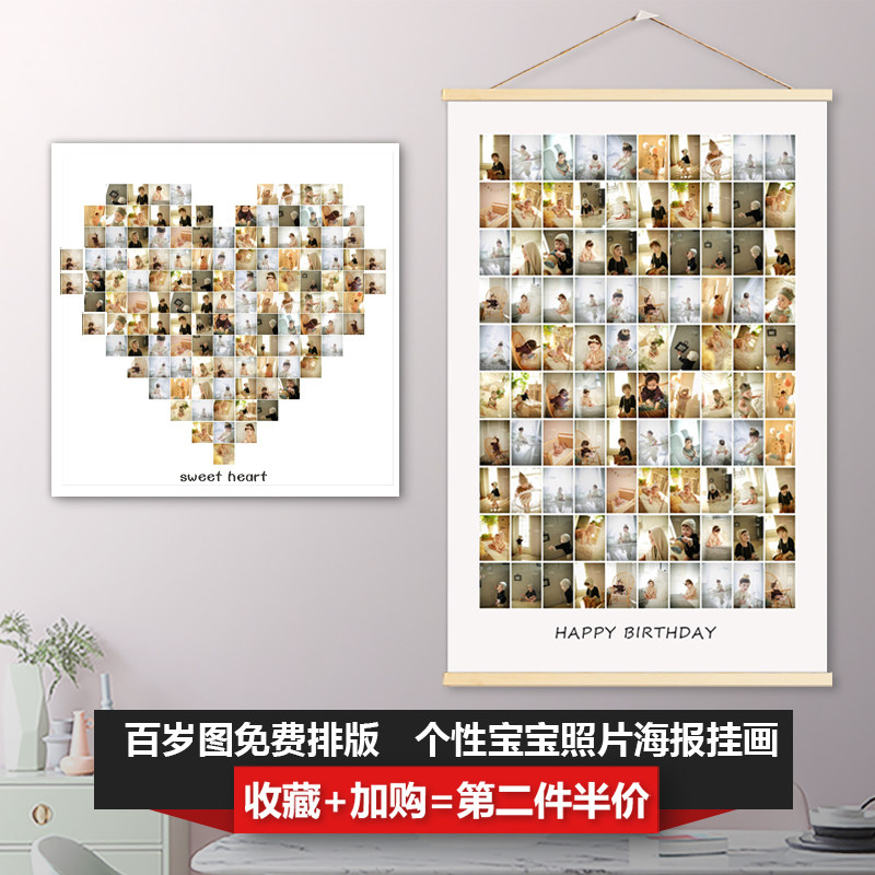 百岁图定制宝宝百睡图沛满月纪念照片创意设计打印制作百天礼物热门设计联盟服务商