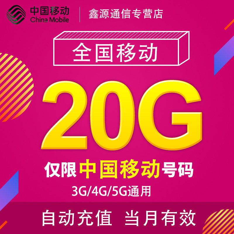 甘肃移动流量充值20G 全国3G/4G/5G通用手机上网流量包当月有效XY热门设计联盟服务商